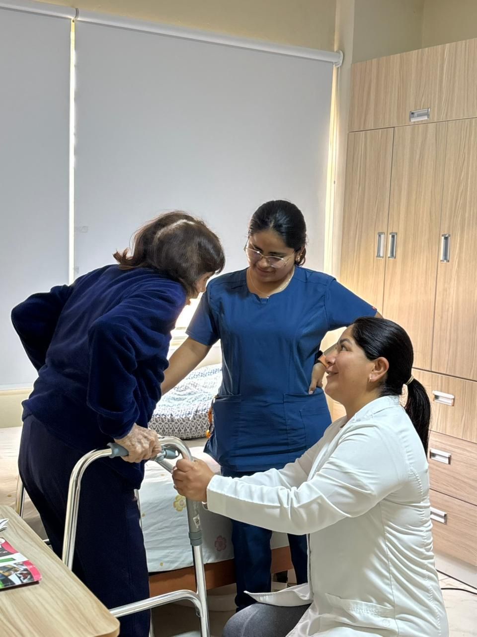 Un grupo de profesionales de la salud, enfermería, fisioterapia y psicología que brindan atención continua y personalizada, con calidez y respeto a los adultos mayores.